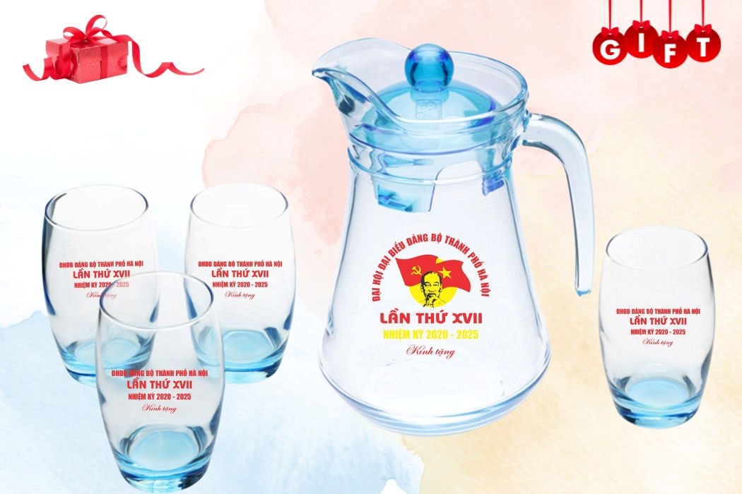 1. Bộ ấm trà/ Ly sứ: In logo công đoàn, phù hợp với nhiều đối tượng.