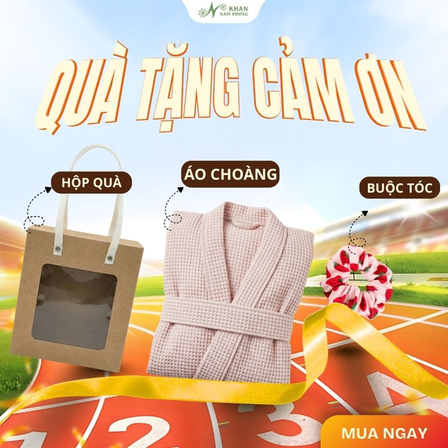 Các combo được kết hợp linh hoạt để đáp ứng từng mục đích tặng: Combo 1 gồm băng đô và khăn cotton cùng hộp quà – phù hợp cho sự kiện làm đẹp, workshop hoặc chương trình chăm sóc cá nhân; Combo 2 với thiệp, khăn tắm, áo thun và hộp quà – mang đến sự đầy đủ và thực tế, rất thích hợp cho hoạt động tri ân quy mô lớn; Combo 3 gồm áo choàng, buộc tóc scrunchies và hộp quà – mang hơi thở thư giãn, sang trọng, phù hợp tặng đối tượng nữ hoặc khách mời cao cấp. Tất cả đều được đóng gói chỉnh chu, giúp nâng tầm hình ảnh người tặng.