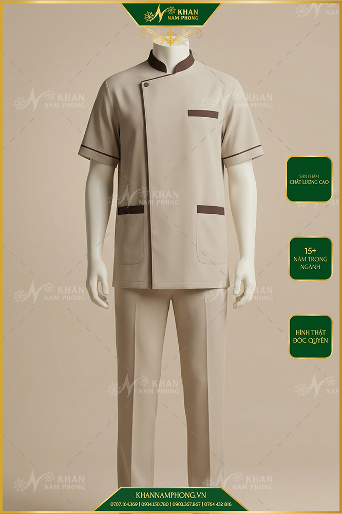 Đồng phục lễ tân nam Khăn Nam Phong là giải pháp trang phục chuyên nghiệp dành cho khách sạn, spa, resort, trung tâm thẩm mỹ, phòng khám và doanh nghiệp dịch vụ đang chú trọng hình ảnh thương hiệu ngay từ điểm chạm đầu tiên với khách hàng. Sản phẩm được thiết kế cho đội ngũ lễ tân nam – những người trực tiếp đón tiếp, tư vấn và hỗ trợ khách hàng mỗi ngày, đòi hỏi ngoại hình chỉn chu, lịch sự và đồng bộ.
