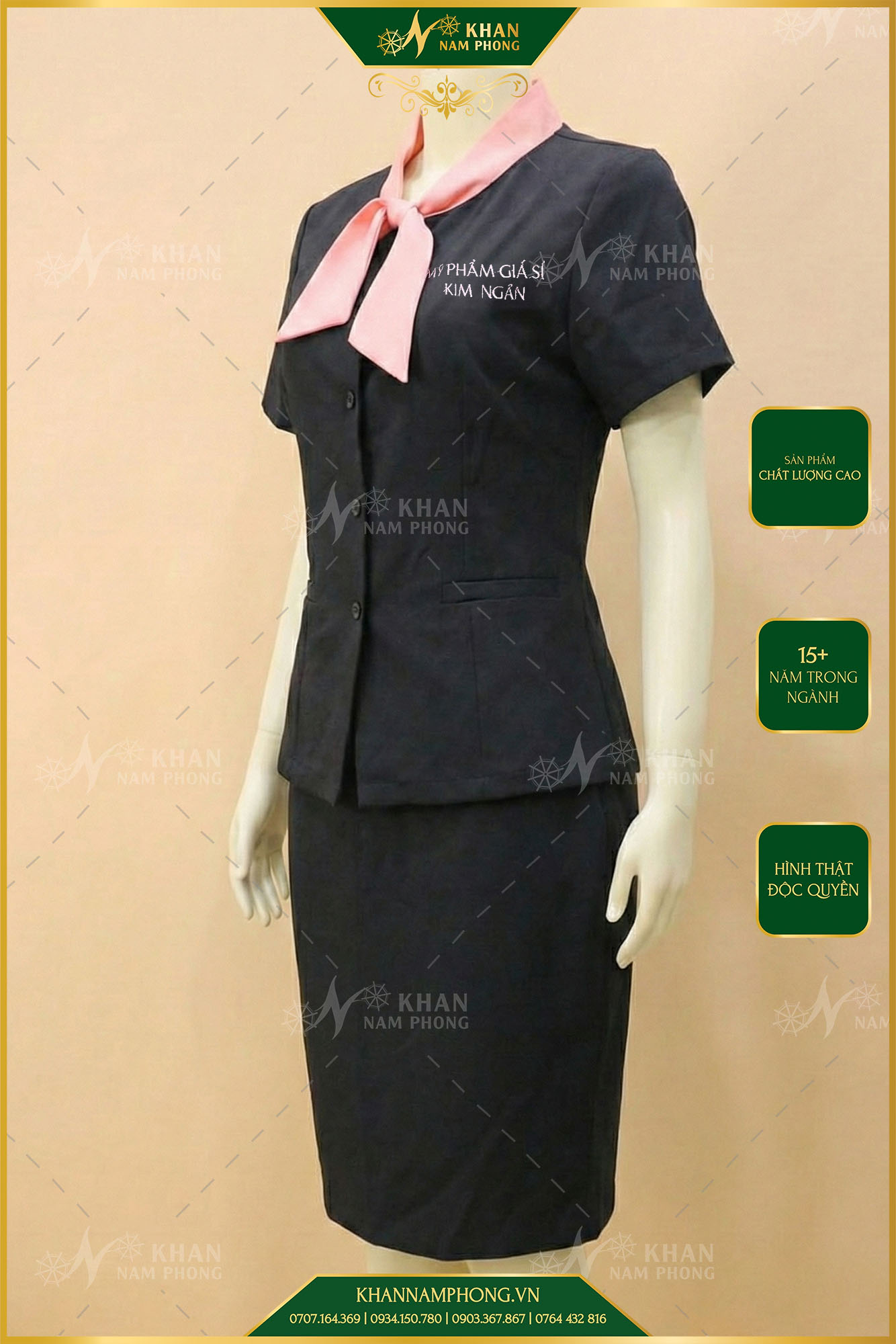 Hình Ảnh Váy Đồng Phục Spa Màu Đen Cotton Nhật Thêu Logo Mỹ Phẩm Giá Sỉ Kim Ngân