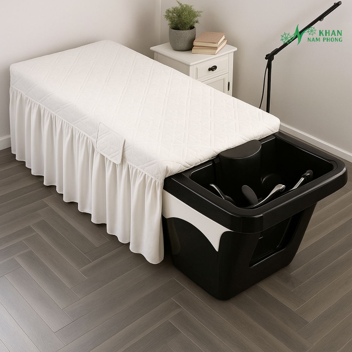 Ga Trải Giường Gội Đầu Màu Trắng Chất Liệu Cotton Chần Bông