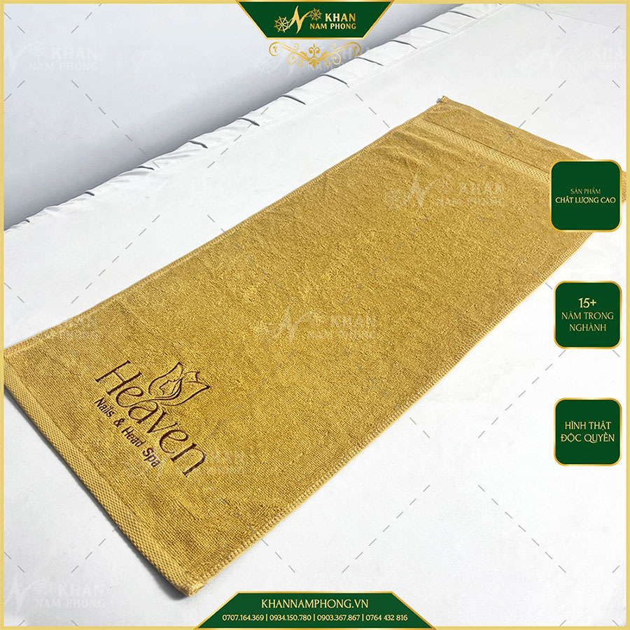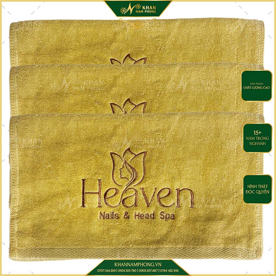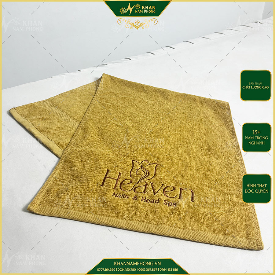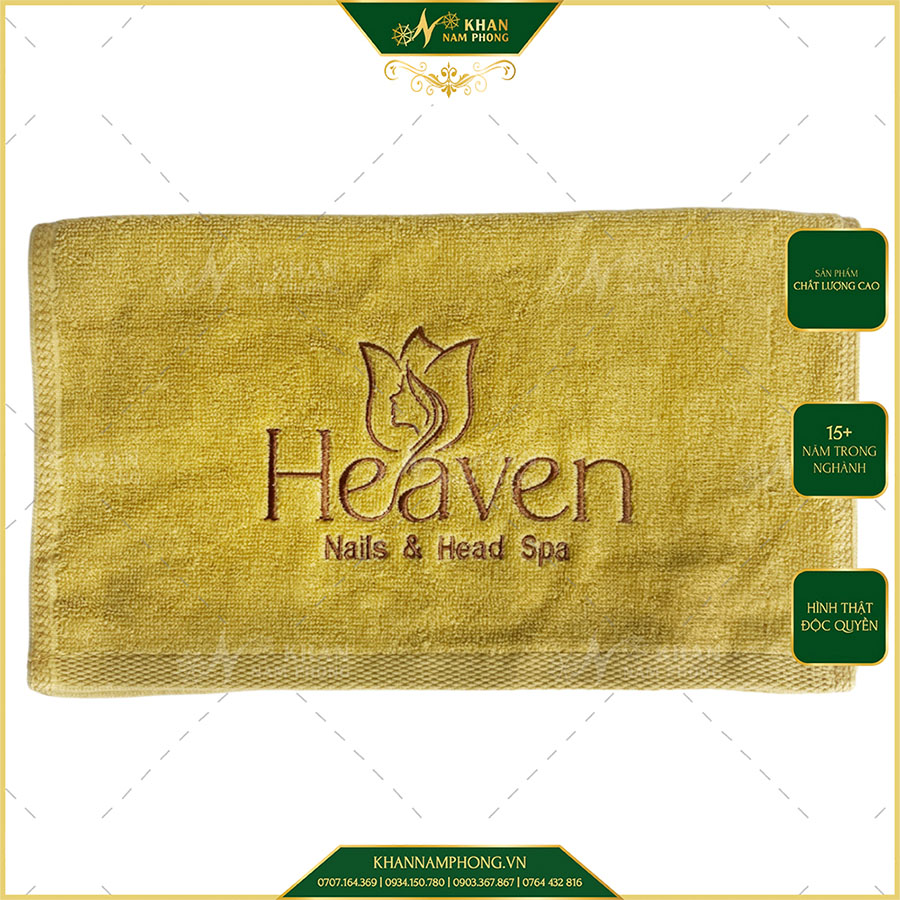 Khăn Làm Nail, Pedicure Cotton 34X80 cm Thêu Logo Heaven Màu Vàng Bò