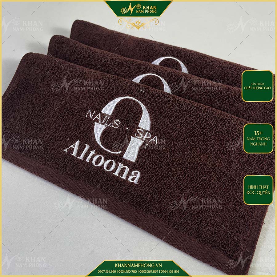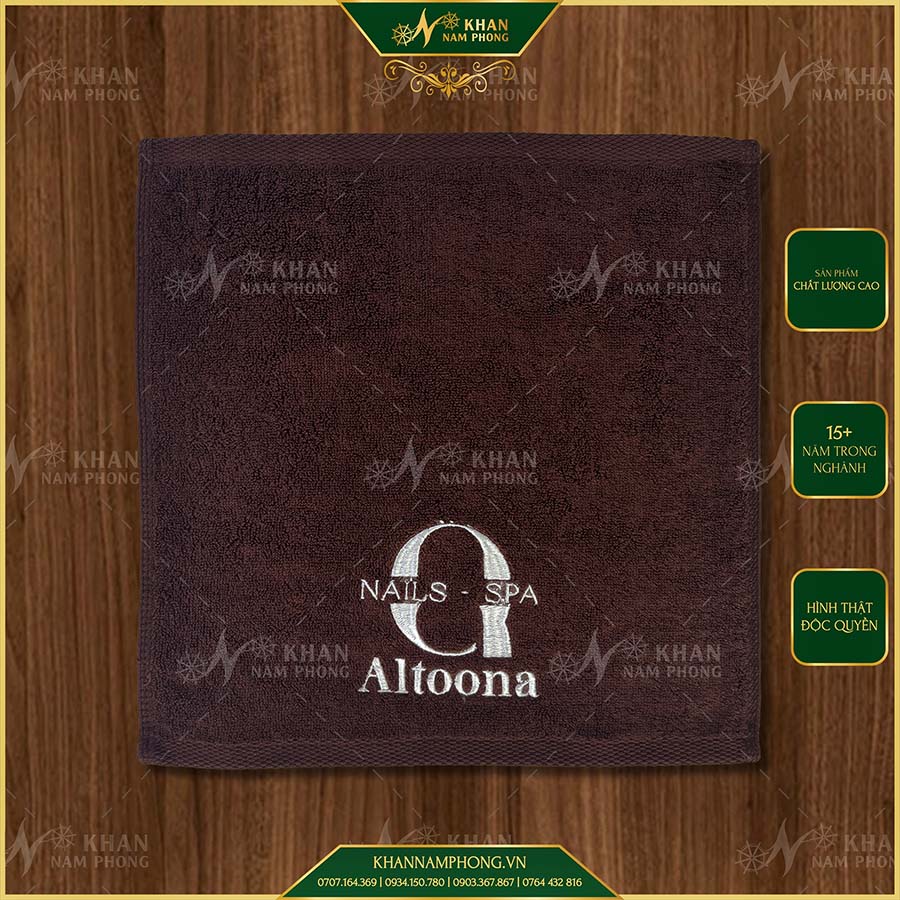 Khăn Tay Làm Nail 34x34cm Màu Nâu Socola Thêu Logo “ALTOONA”