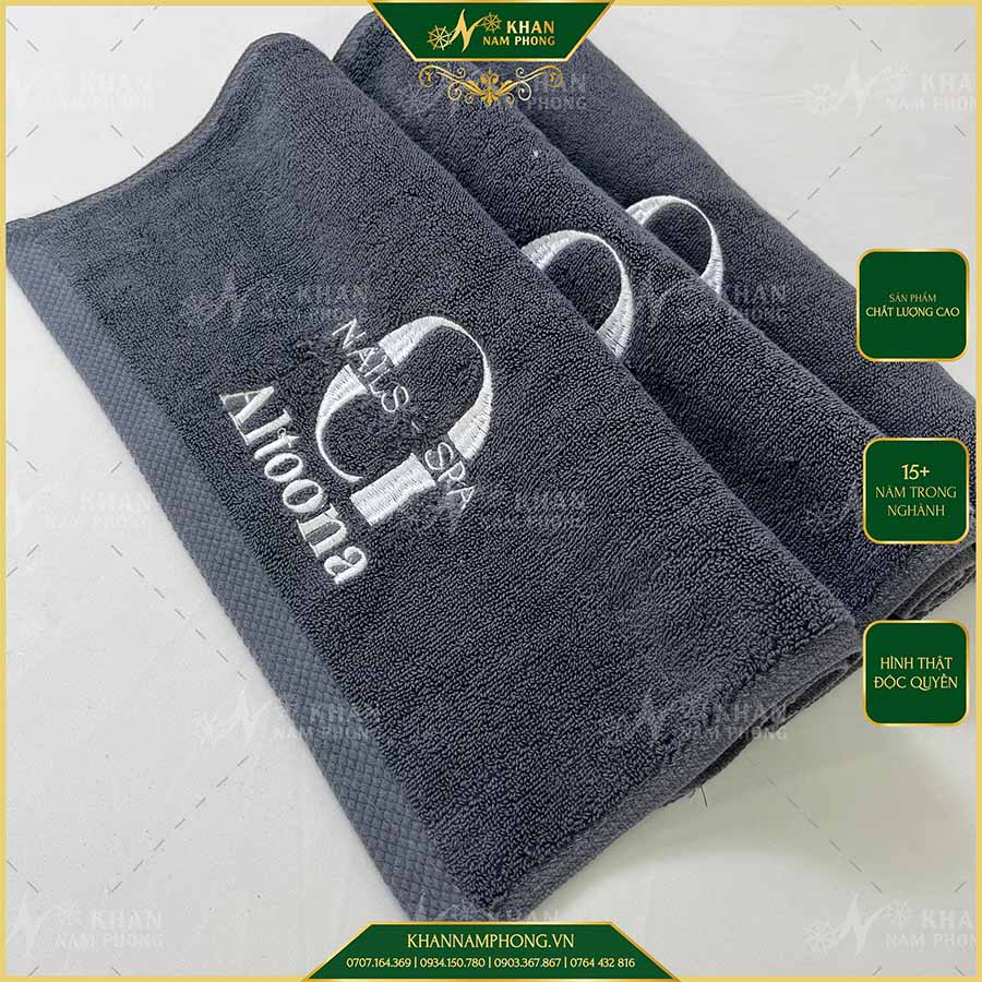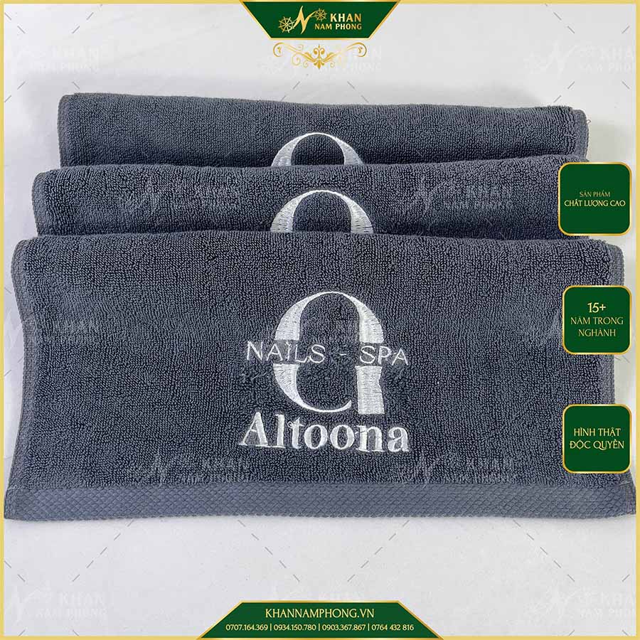 Khăn Tay Làm Nail 34x34cm Màu Xám Thêu Logo “ALTOONA”