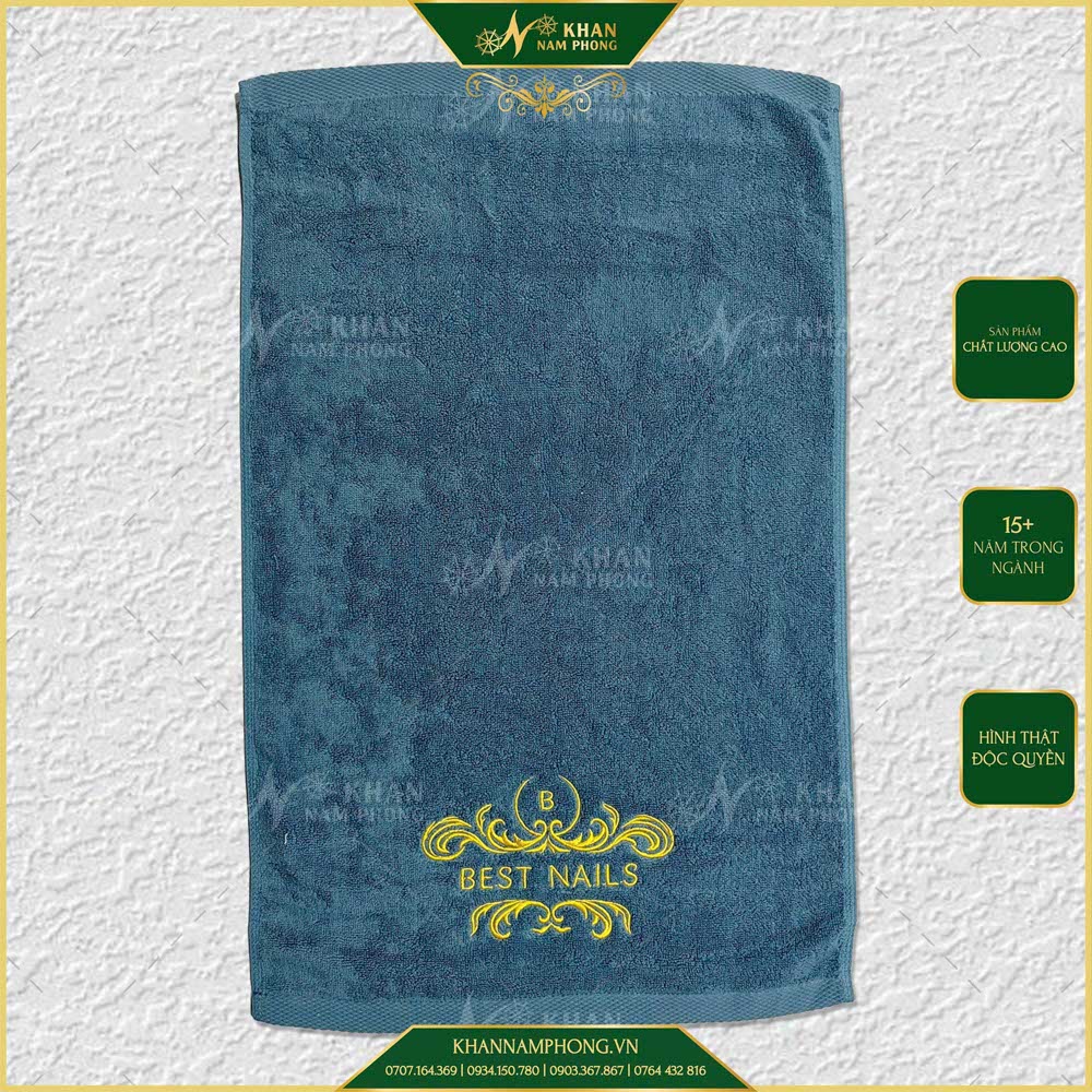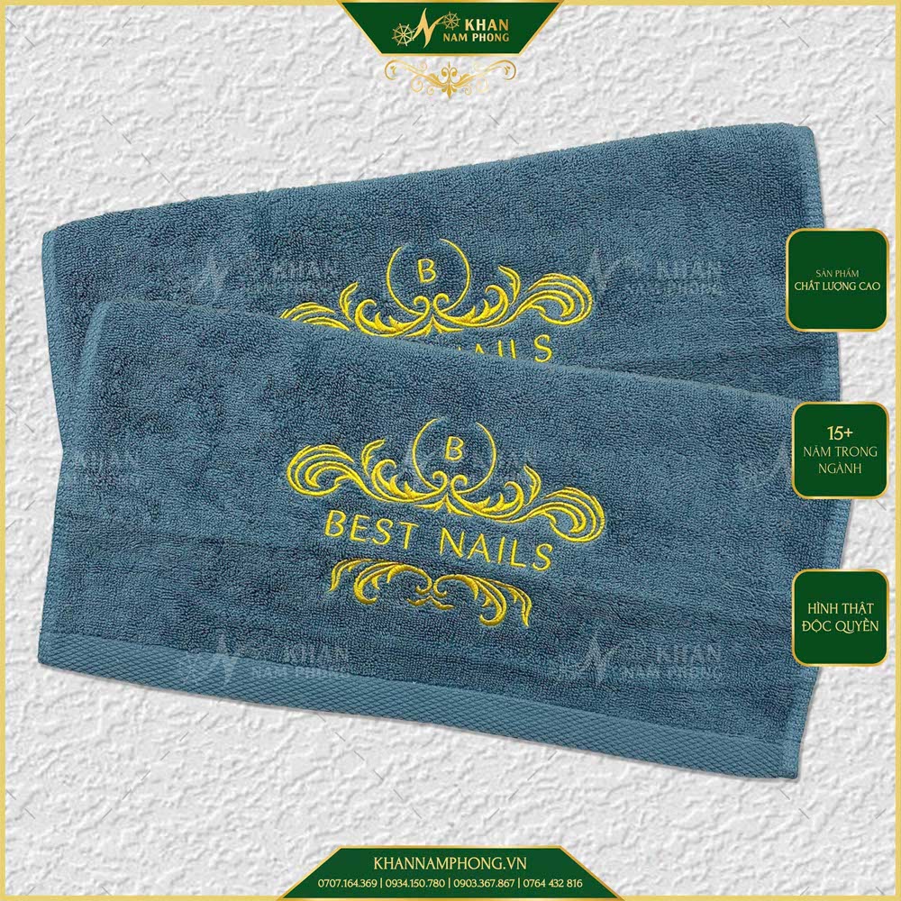 Khăn tay làm nail pedicure 34x34cm thêu logo màu xanh vintage là mẫu khăn mình sản xuất cho Best Nail với mục tiêu tối ưu thao tác nhanh và giữ hình ảnh tiệm luôn gọn gàng. Với kích thước nhỏ gọn và chất liệu cotton nail towel thấm hút tốt, khăn giúp tiệm dễ xoay vòng trong ngày mà vẫn đảm bảo độ bền, hạn chế phải thay mới nhiều lần. Đây là lựa chọn phù hợp cho cả nail salon tại Việt Nam và thị trường Mỹ.